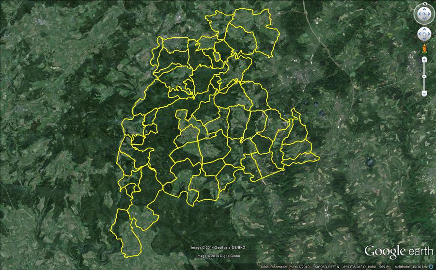 Um einen Überblick über den Hegering zu generieren ist es hilfreich alle Reviere in Google Earth einzuarbeiten